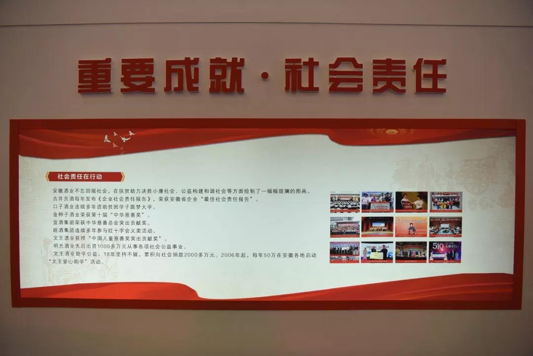 美酒之美,還在于彰顯時代之美、擔(dān)當(dāng)行業(yè)之責(zé)。安徽酒業(yè)不忘回報社會,踐行社會責(zé)任,以不斷增長的業(yè)績貢獻(xiàn)社會,更在扶貧助力決勝小康社會、公益構(gòu)建和諧社會等方面繪制了一幅幅斑斕的圖畫。