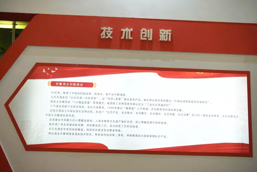 在此次酒博會上,不僅能夠通過更加生動、直觀的畫面感受安徽酒業(yè)40年的巨大變化,更能體會到改革開放40年來,安徽酒業(yè)在五大制造(智能制造、高端制造、精品制造、綠色制造、服務(wù)性制造)方面不斷取得的創(chuàng)新和突破。