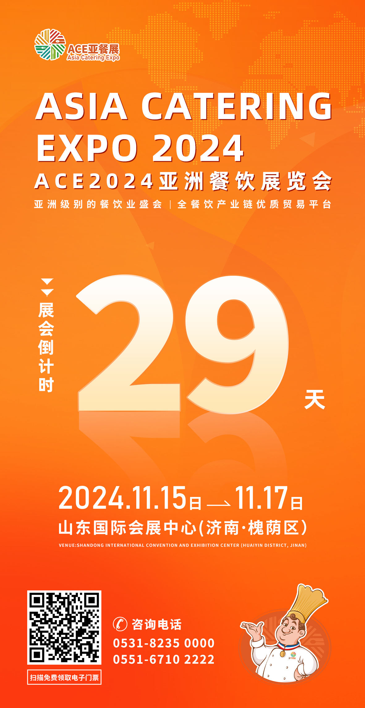 11月15日,ACE2024亞洲餐飲展覽會(huì)(簡(jiǎn)稱ACE2024亞餐展)就要在濟(jì)南市的山東國(guó)際會(huì)展中心盛大開幕了。展會(huì)將持續(xù)三天至17日。