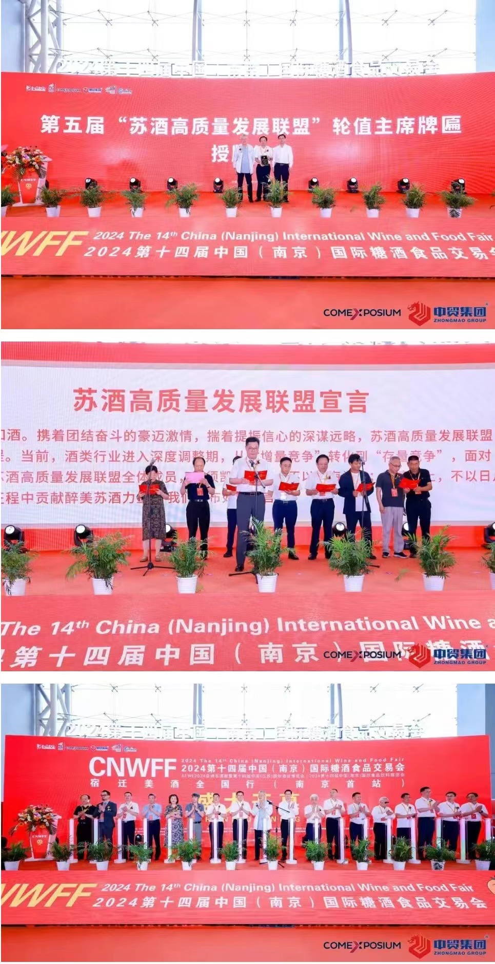 第十四屆南京糖酒會(huì),由中國(guó)酒業(yè)協(xié)會(huì)、中國(guó)酒類(lèi)流通協(xié)會(huì)、江蘇省工業(yè)和信息化廳、江蘇省商務(wù)廳、江蘇省工商業(yè)聯(lián)合會(huì)指導(dǎo),江蘇省財(cái)貿(mào)輕紡工會(huì)、南京市商務(wù)局支持,江蘇省酒類(lèi)行業(yè)協(xié)會(huì)、法國(guó)高美艾博展覽集團(tuán)、中貿(mào)科技集團(tuán)、中法合資高博中貿(mào)國(guó)際會(huì)展集團(tuán)主辦,中法合資高博中貿(mào)國(guó)際會(huì)展(山東)有限公司承辦,宿遷市酒產(chǎn)業(yè)發(fā)展促進(jìn)中心戰(zhàn)略合作。