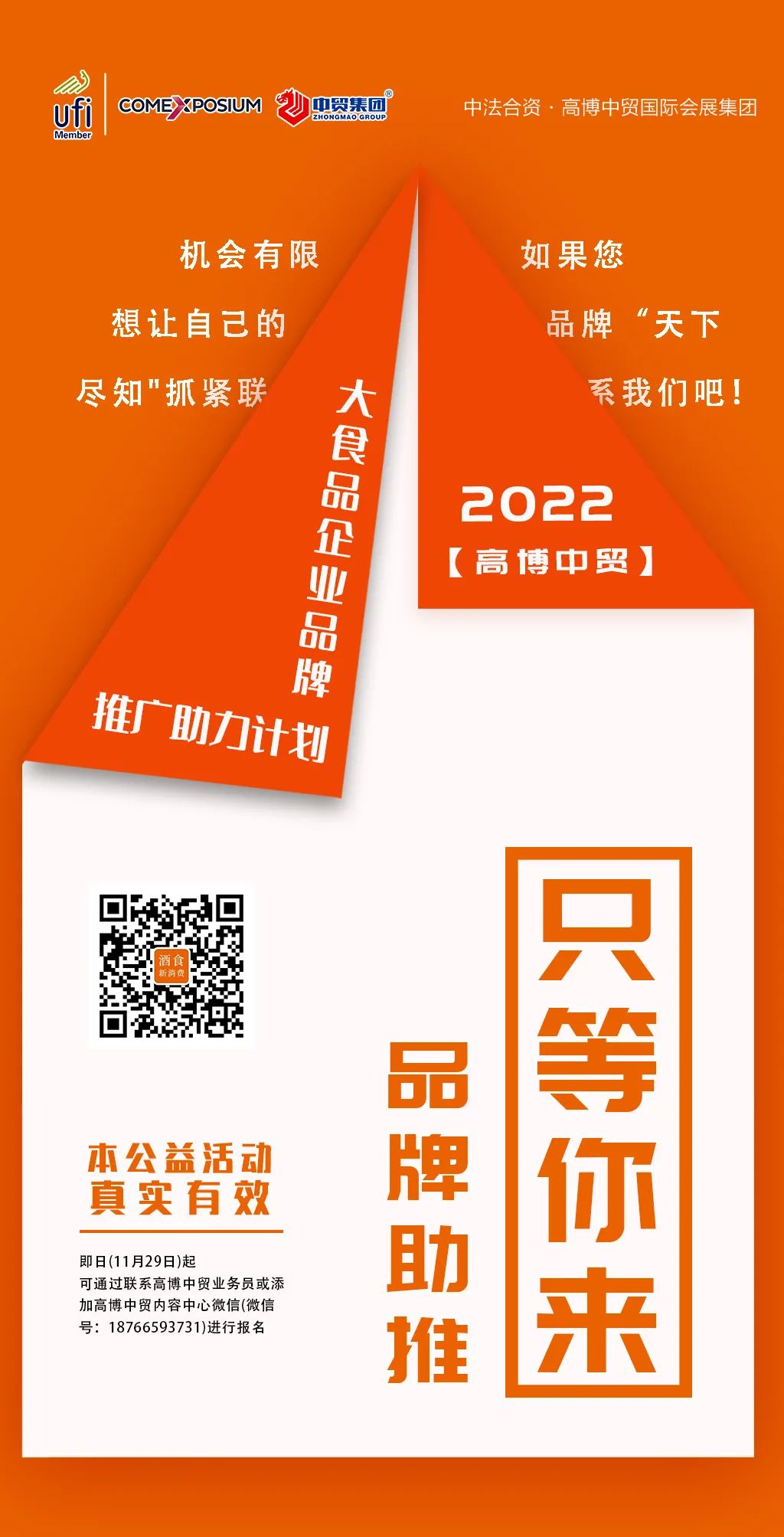 本公益活動真實有效,即日(11月29日)起,可通過聯系高博中貿業(yè)務員或添加高博中貿內容中心微信(微信號:18766593731)進行報名,我們將根據報名順序逐一與企業(yè)進行聯系,著手排期進行助力計劃。